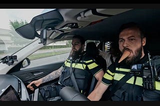 Politieagenten eten ijsje tijdens achtervolging. Geweldig